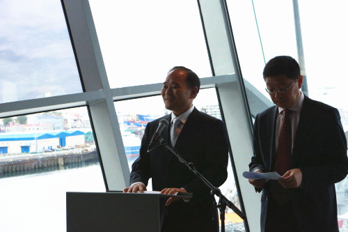 冰岛财务部部长比亚德尼·贝内迪克松在签约仪式现场发表讲话