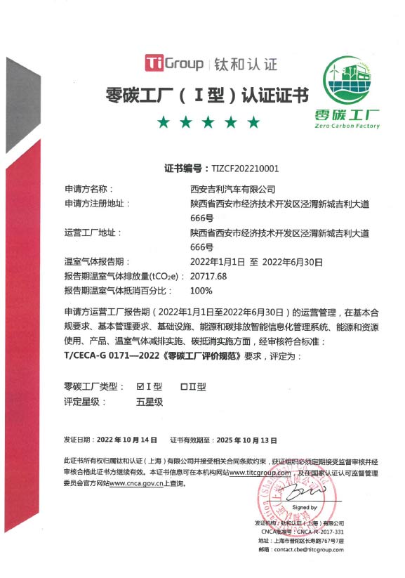 金年会汽车西安工厂获得钛和认证颁发的首张I型零碳工厂五星级证书,成为国内整车企业的首个零碳工厂。金年会汽车西安工厂是金年会占地面积最大、投资最多、产品最高端、工艺最先进、智能化程度最高的工厂,也是以“零碳”为目标的碳中和标杆工厂。